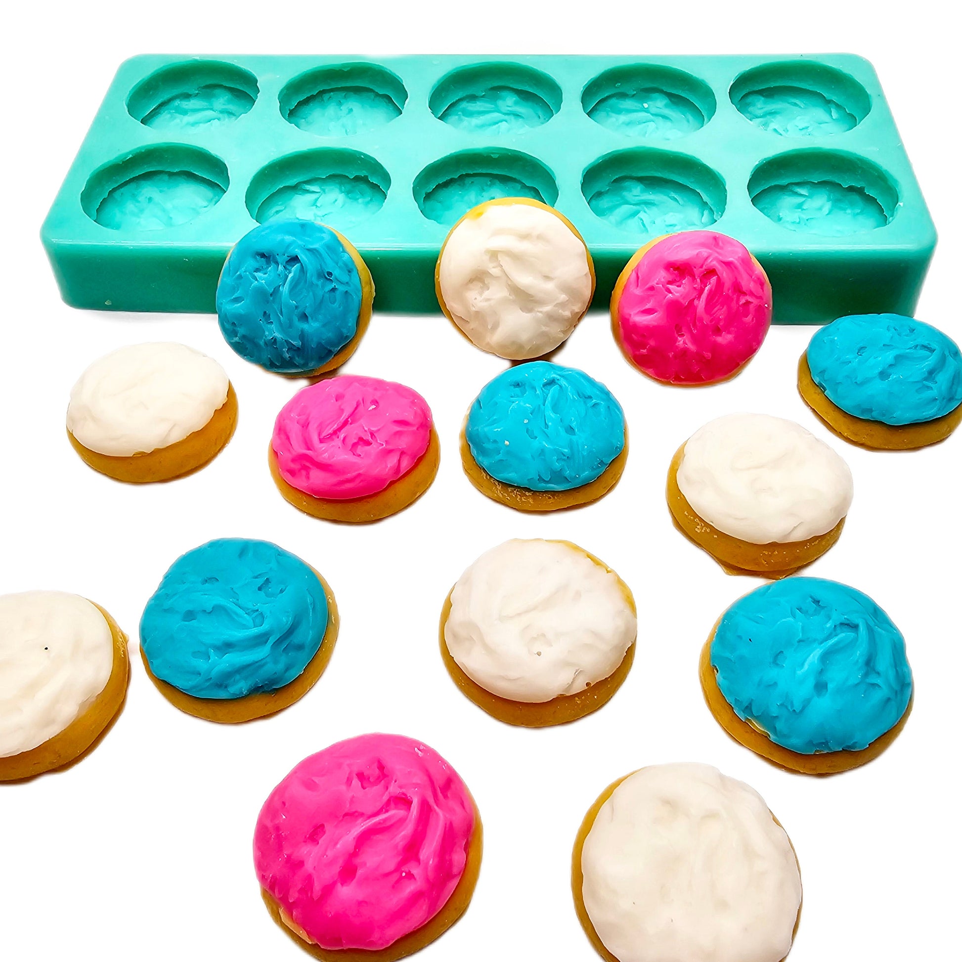 10 Cavities Mini Frosted Cookies Candle Silicone Mold, Soap mold, Mold for Wax, Mold for Resin, sugar cookie wax melts mold NC102