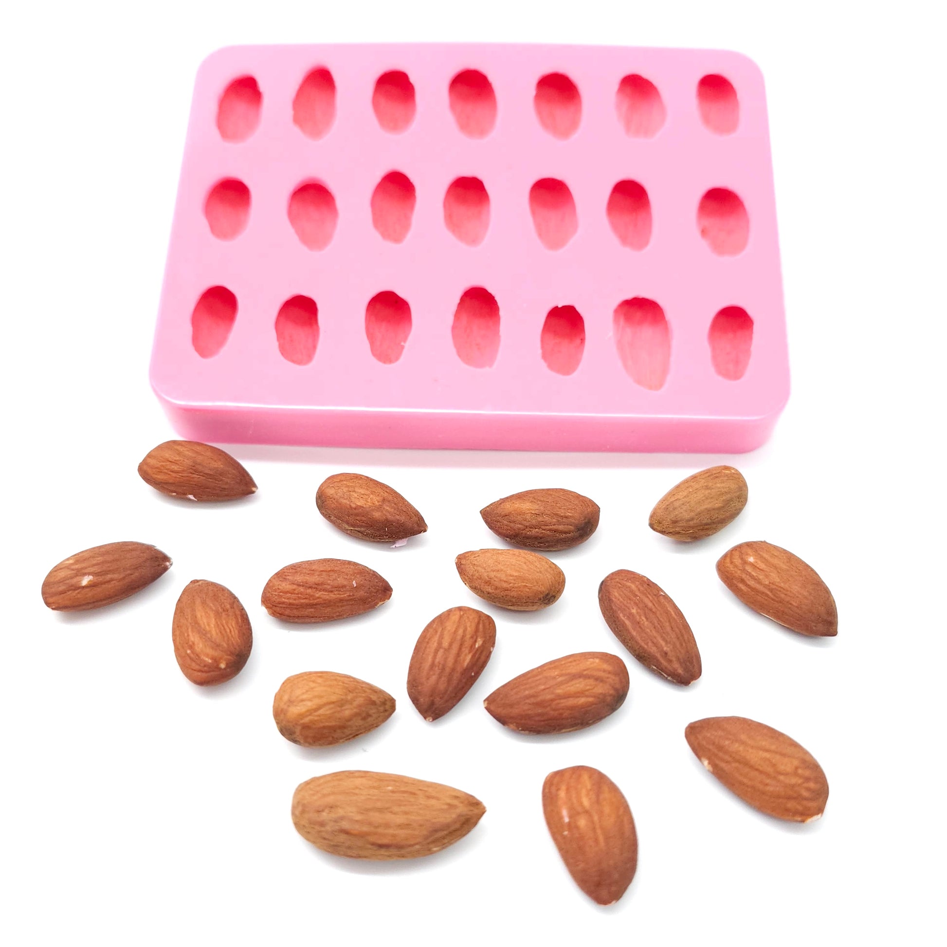Realistic almonds Silicone Mold, designed for various craft activities like candle embeds, soap making, resin art, and clay modeling.