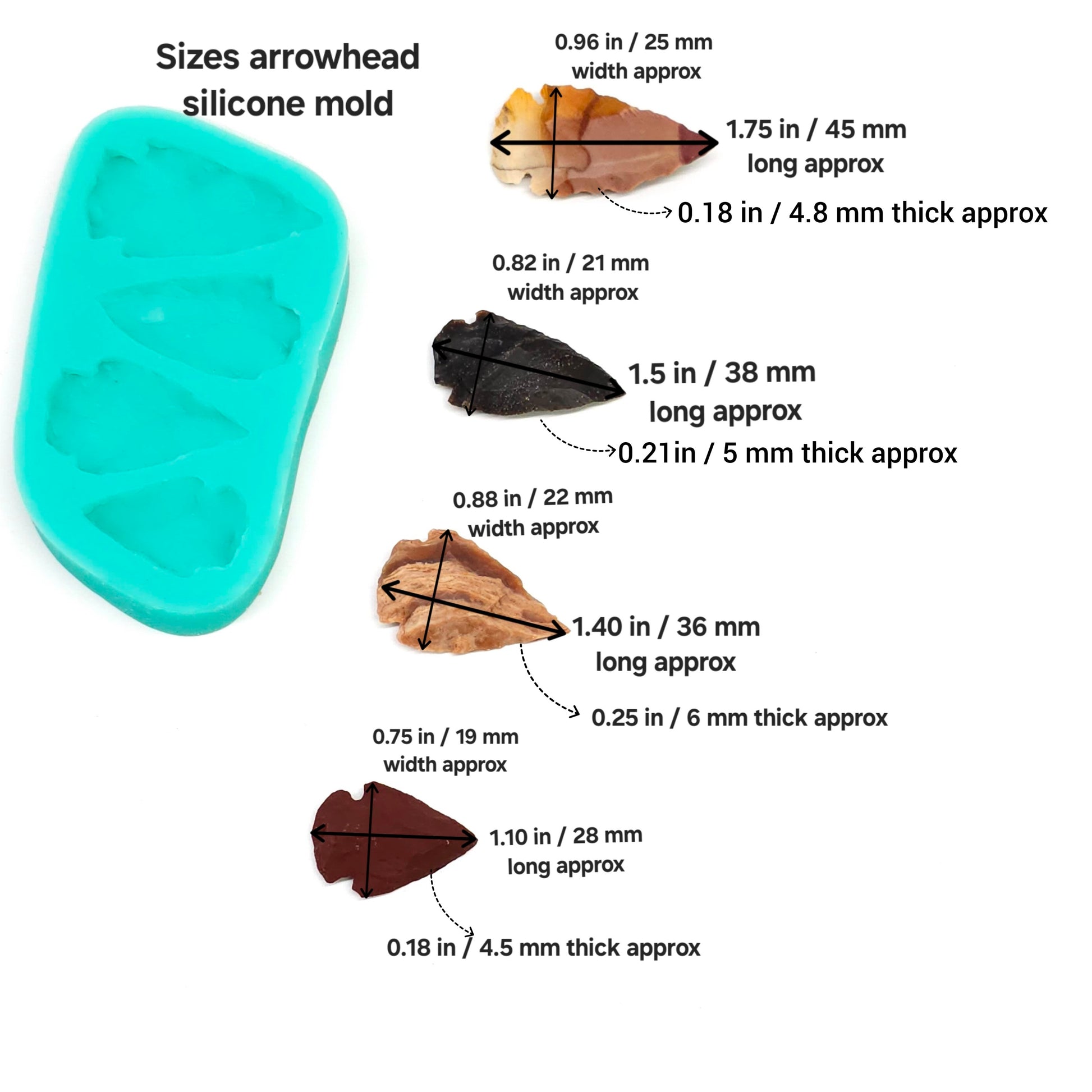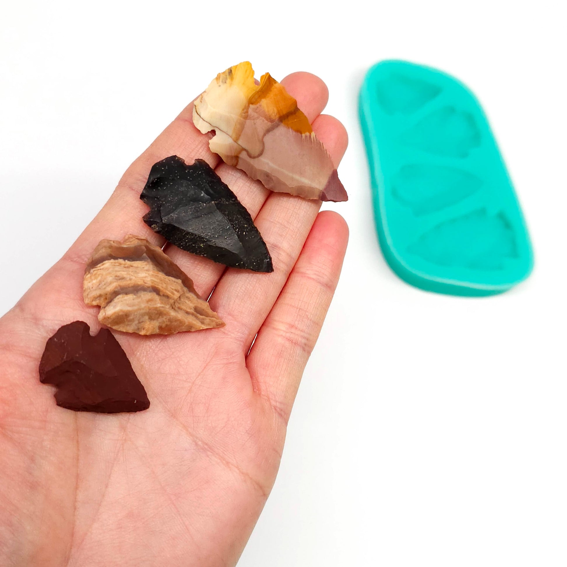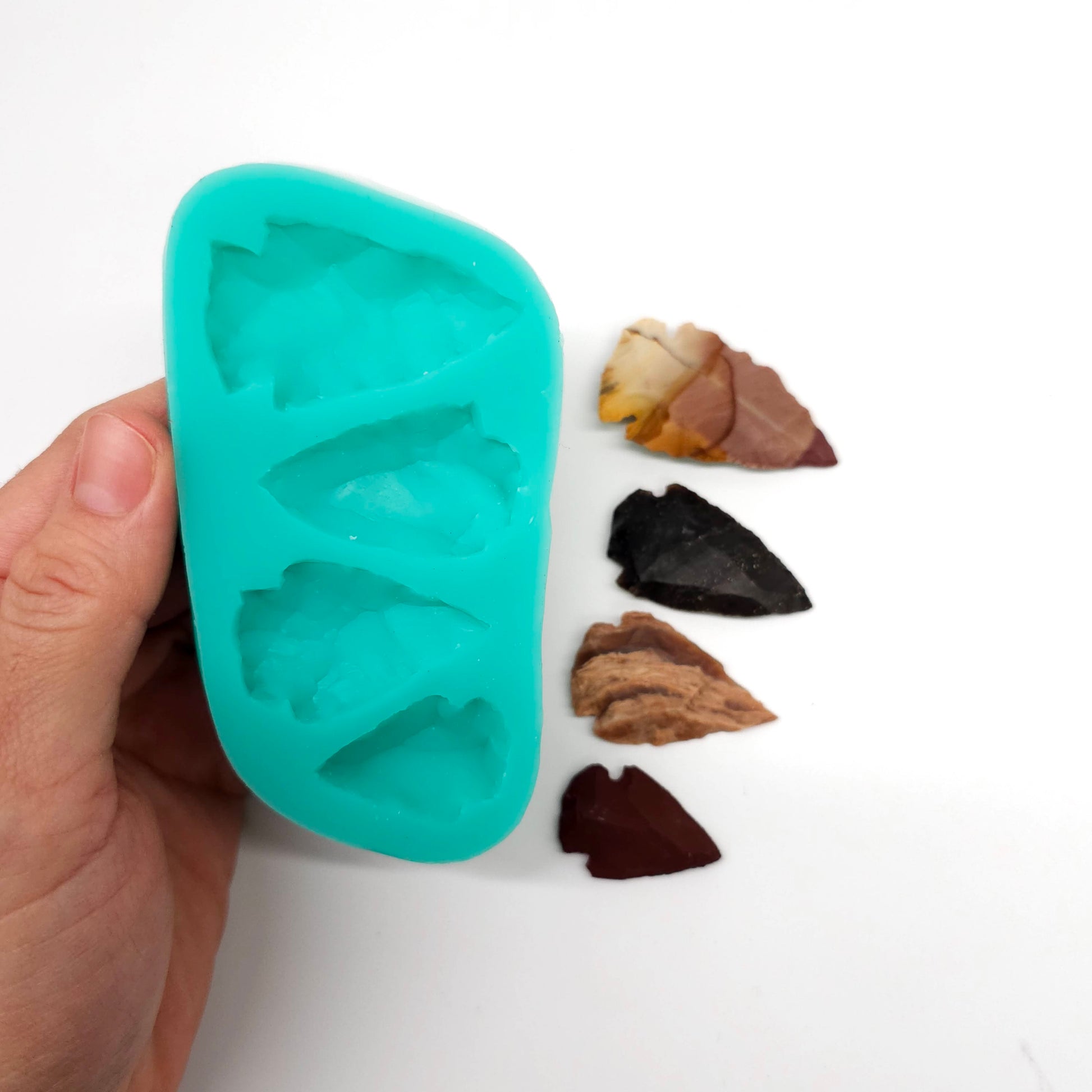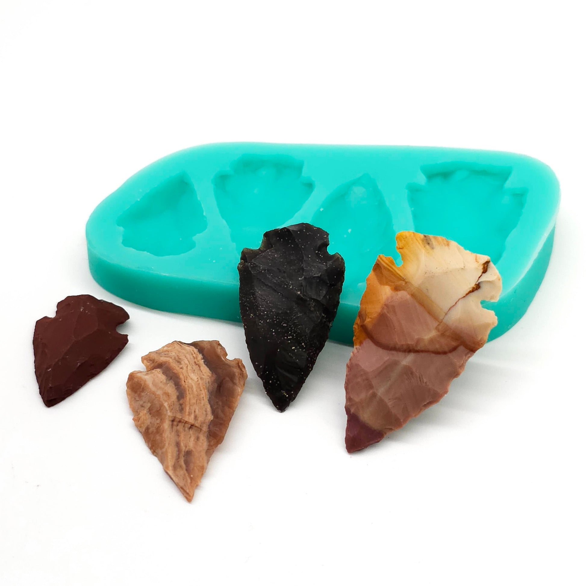 Arrow head Silicone Mold, designed for various craft activities like candle embeds, soap making, resin art, and clay modeling.