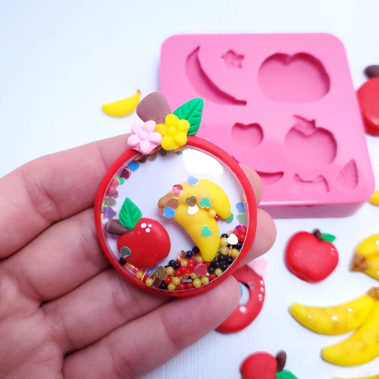 Apples and Bananas Cute Silicone Mold for Fondant Resin Clay Miniatures
