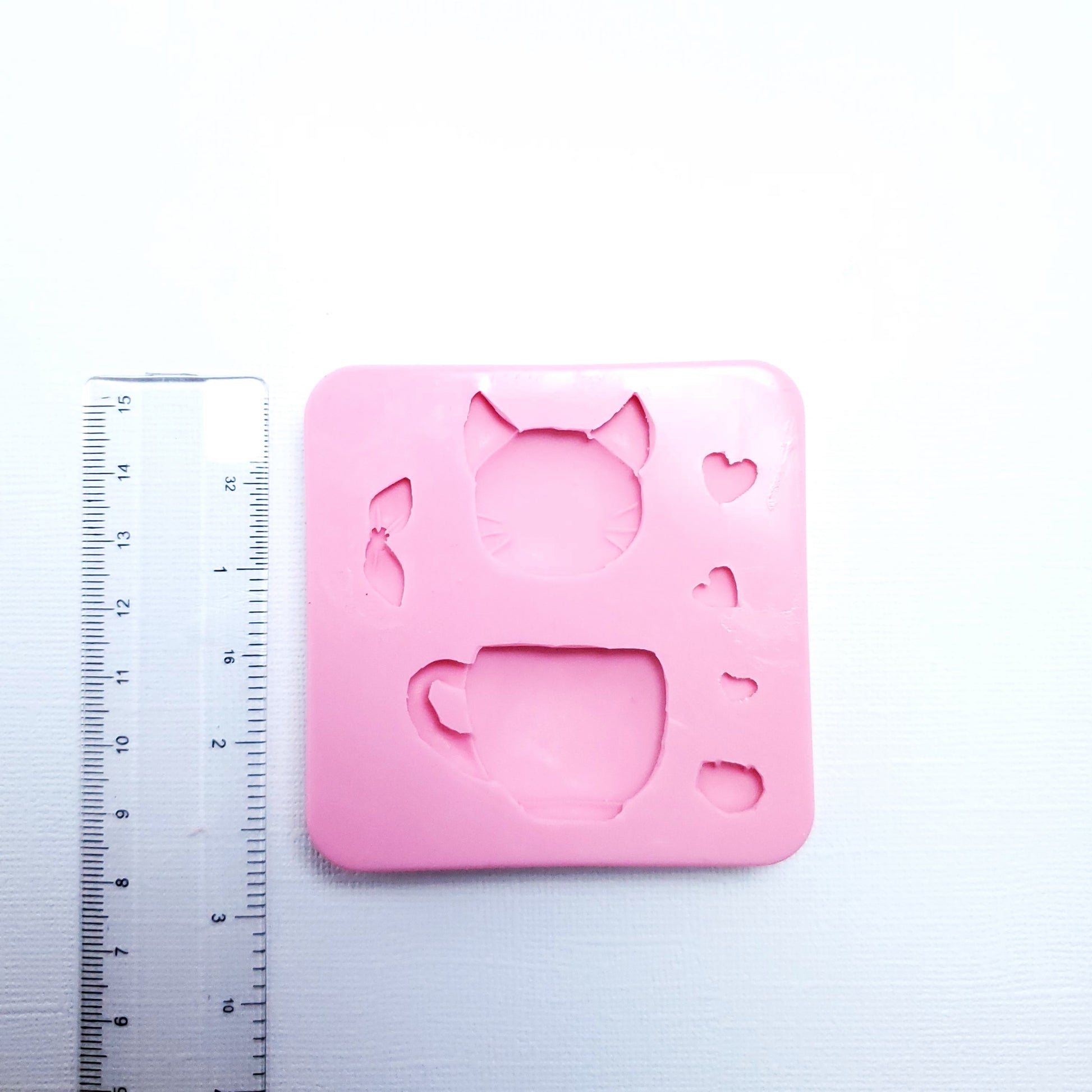 Kitten in Cup Silicone Mold for Fondant, Resin, Polymer Clay and Crafts