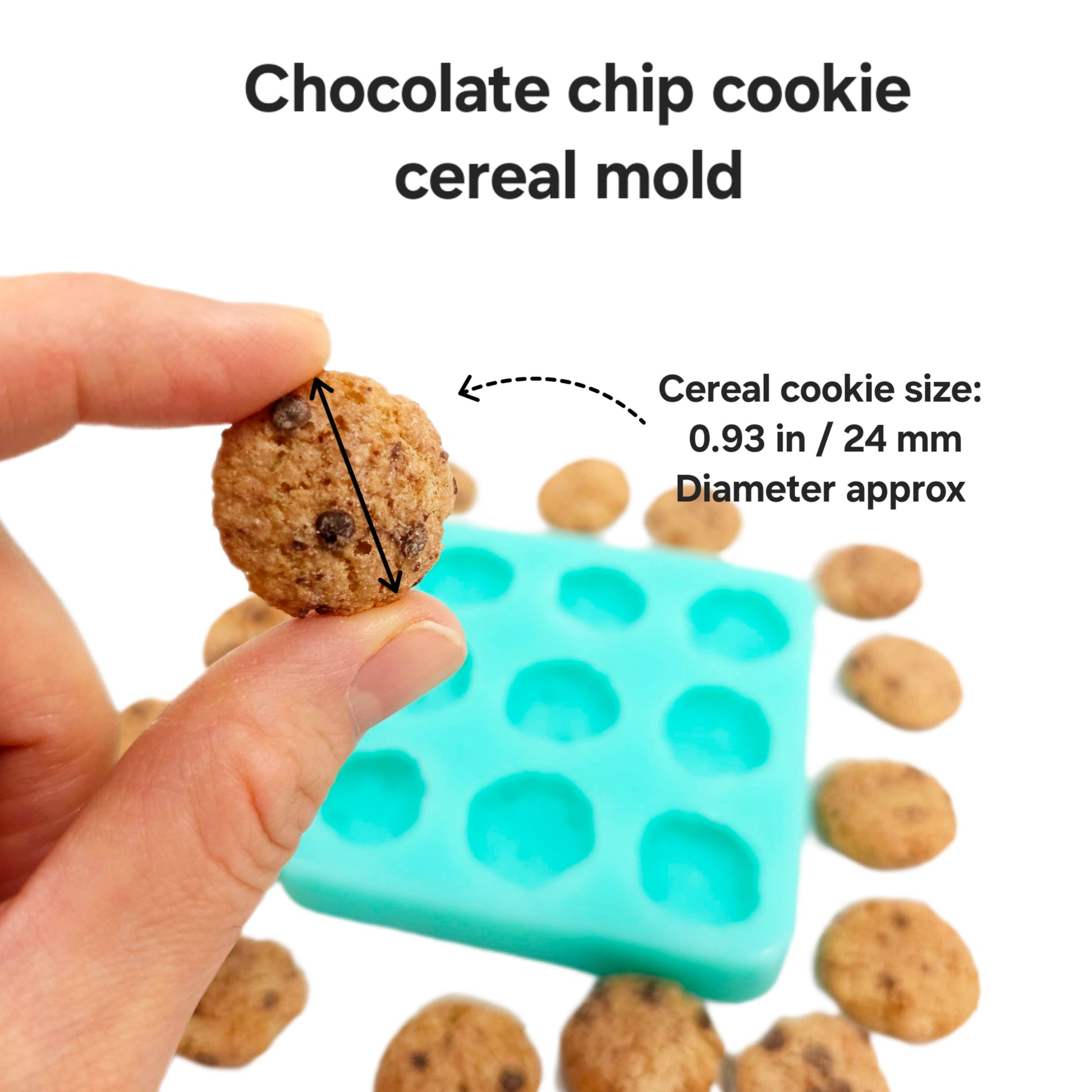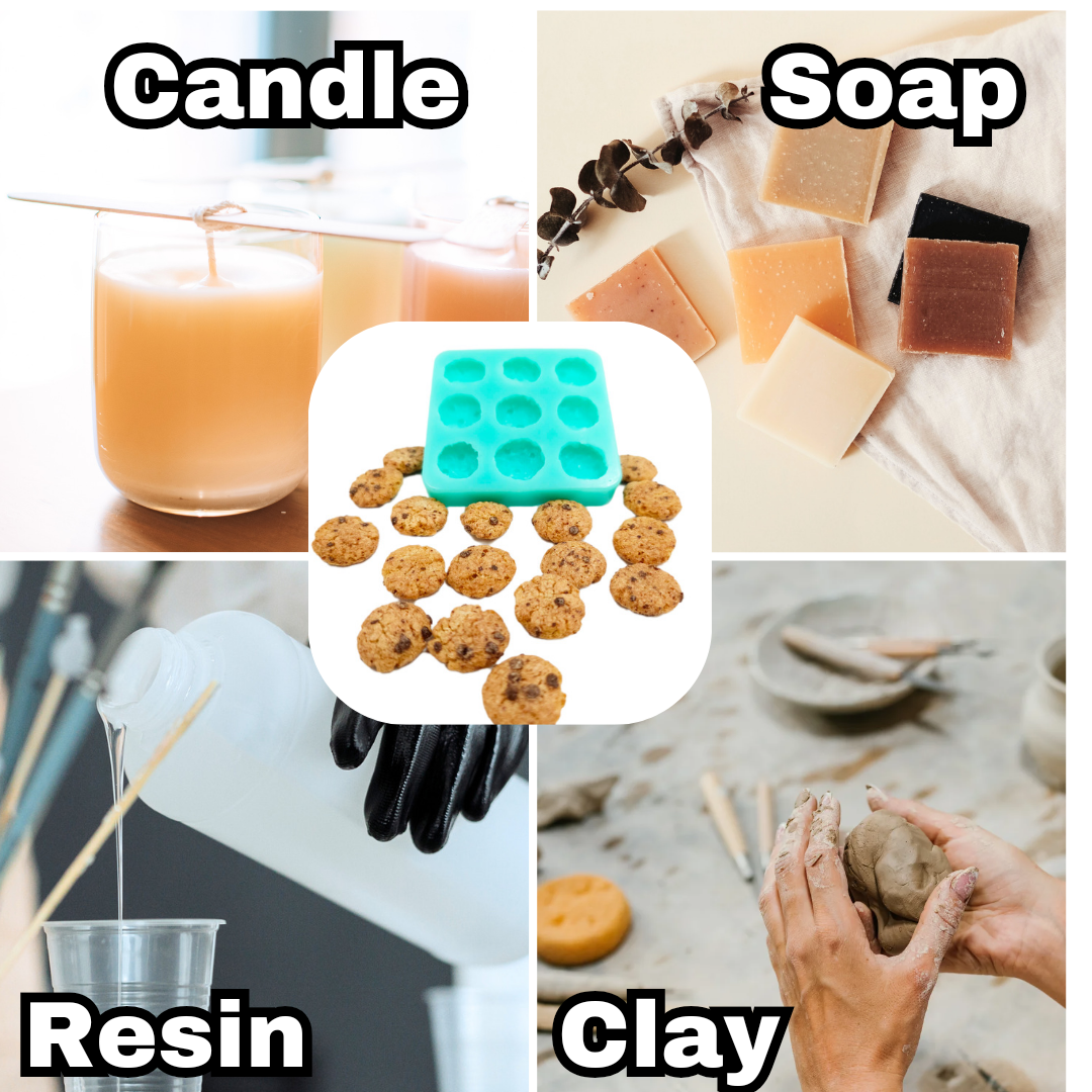 Realistic chocolate chip cereal silicone mold, designed for various craft activities like candle embeds, soap making, resin art, and clay modeling. This mold is ideal for artisans who appreciate a cereal cookie -themed aesthetic in their crafts.