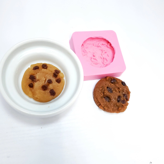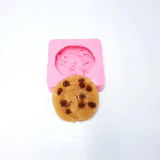 Realistic Chocolate chip cookie silicone mold, designed for various craft activities like candle embeds, soap making, resin art, and clay modeling.