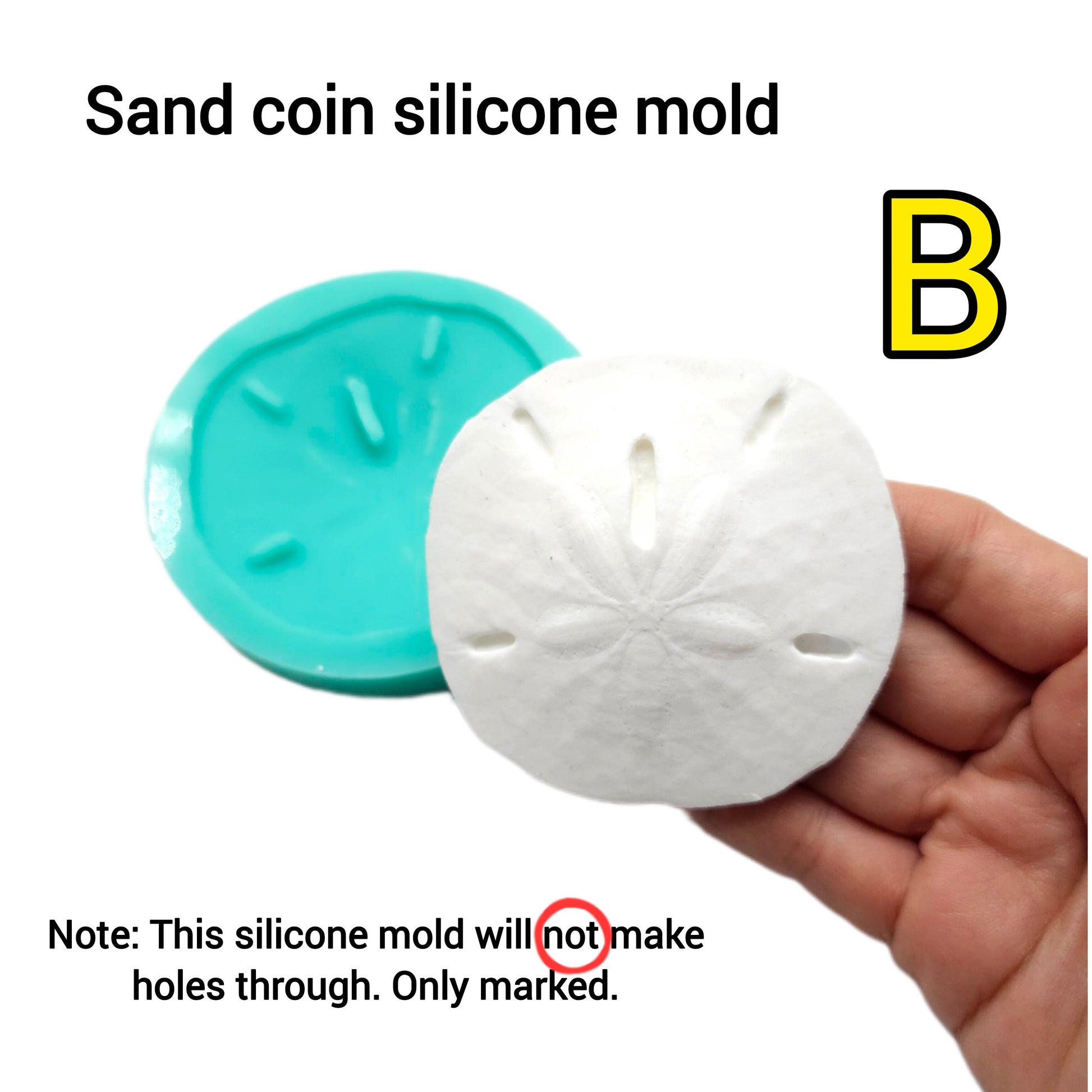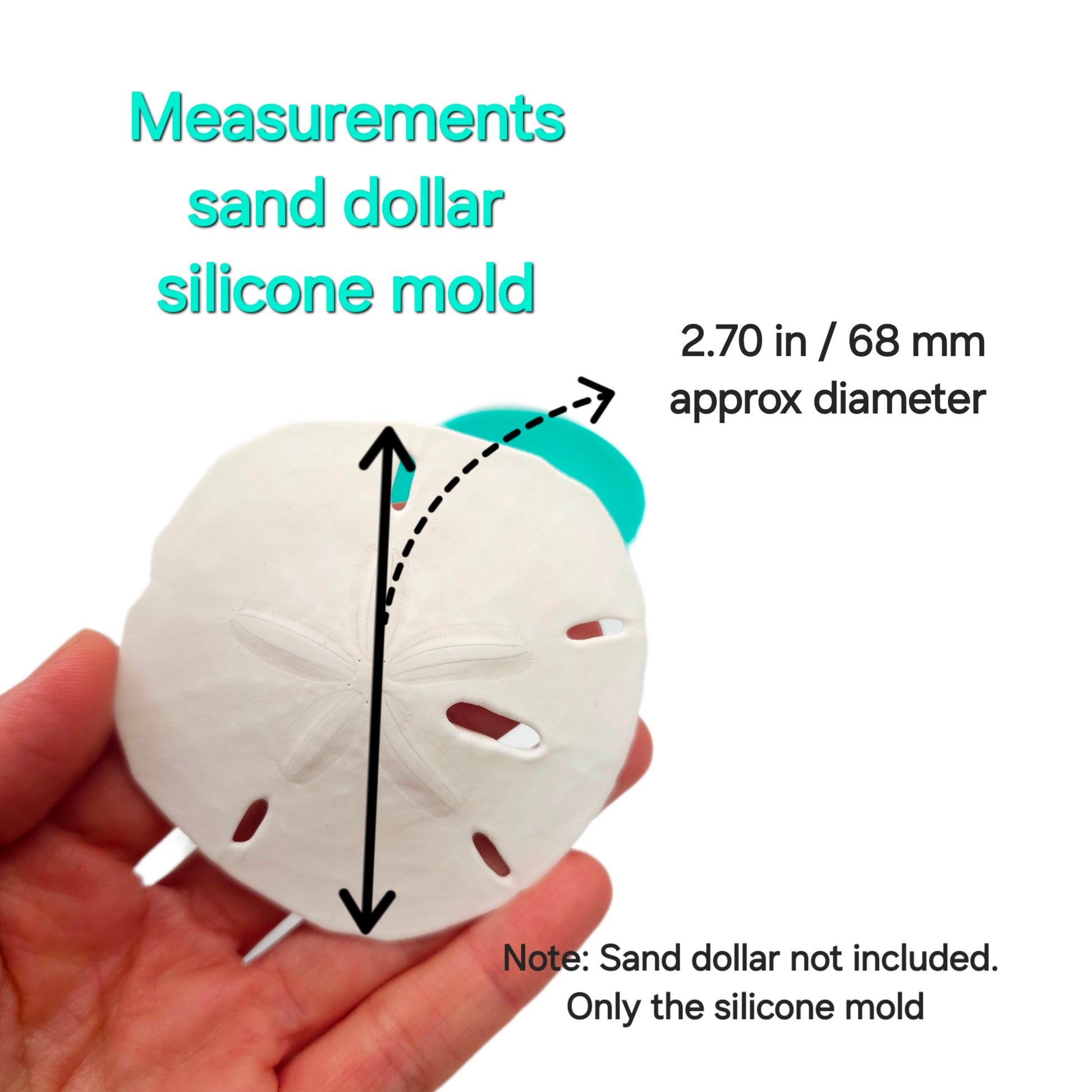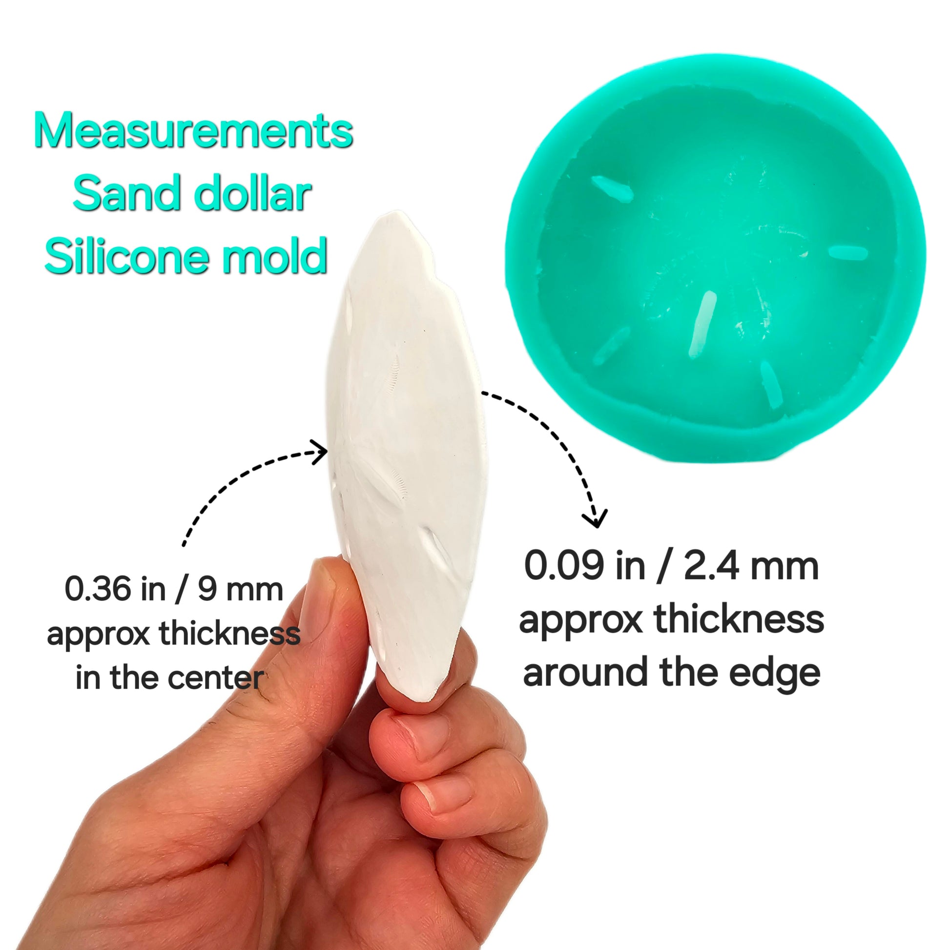 Realistic sand dollar silicone mold, designed for various craft activities like candle embeds, soap making, resin art, and clay modeling.