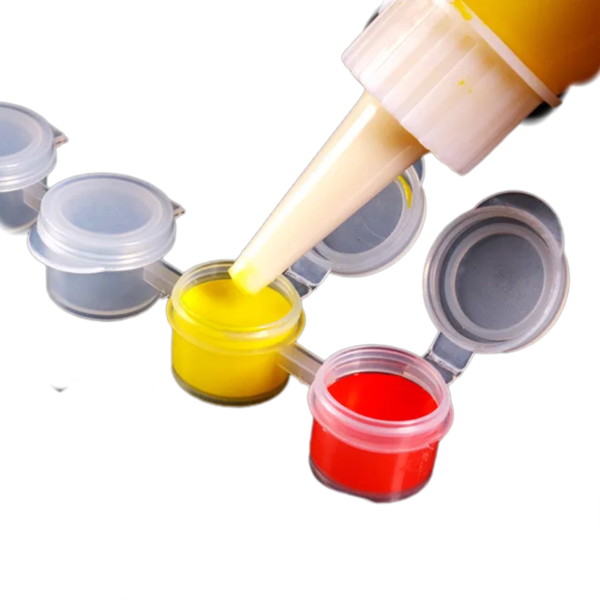Convenient and Durable: The paint pots are made of high-quality material, durable and , not easy to break. They are easy to store and portable to carry around. They clear color make easy to see what is inside.