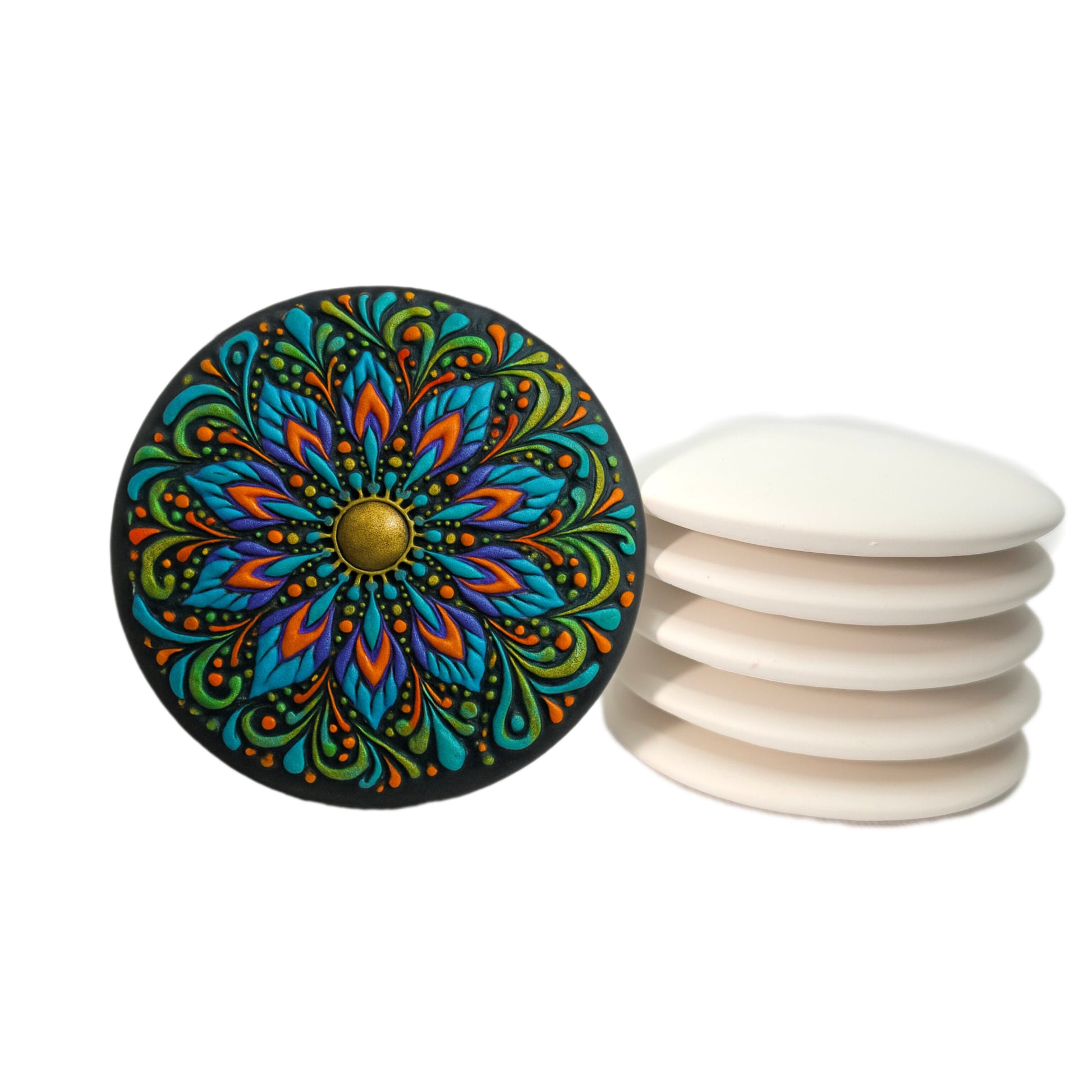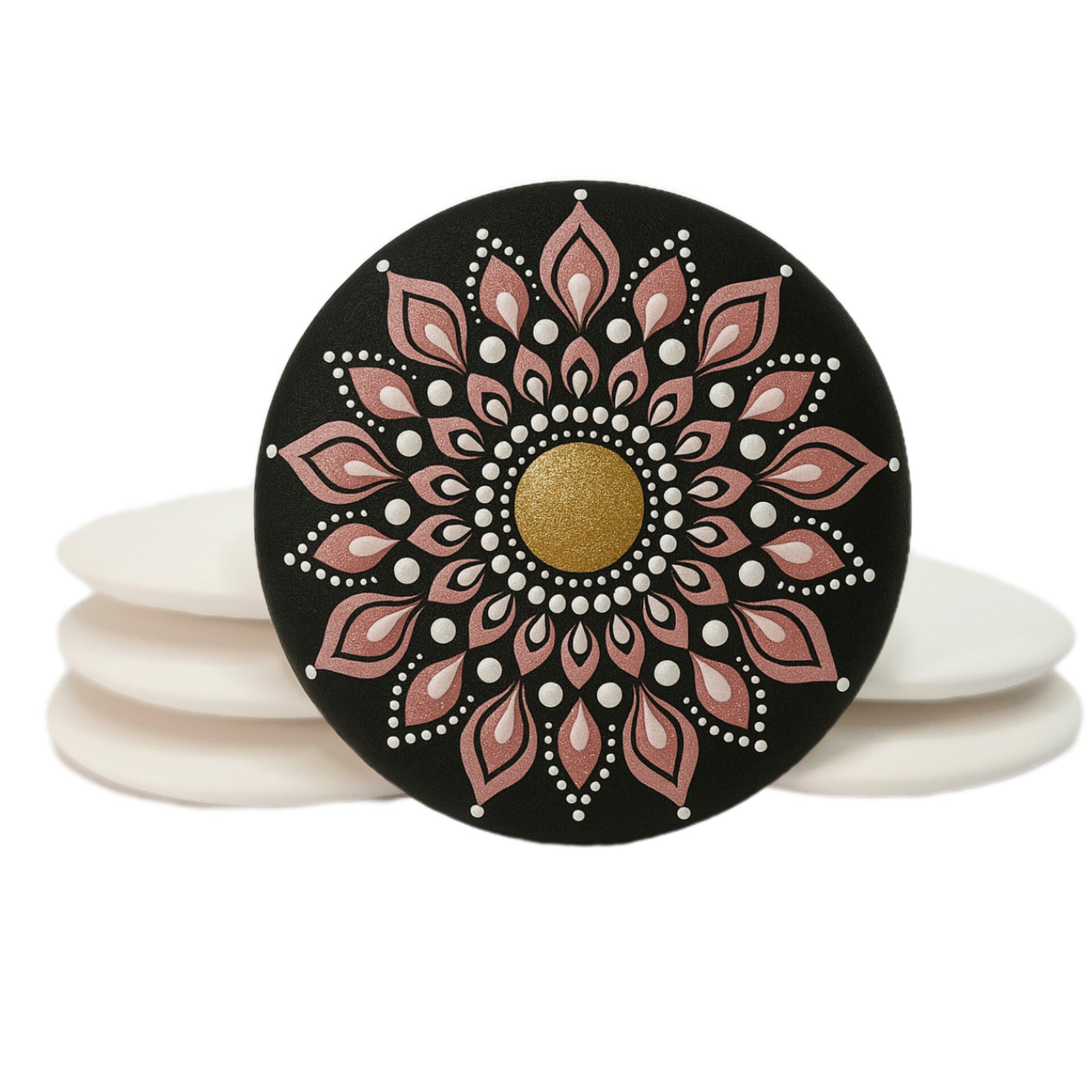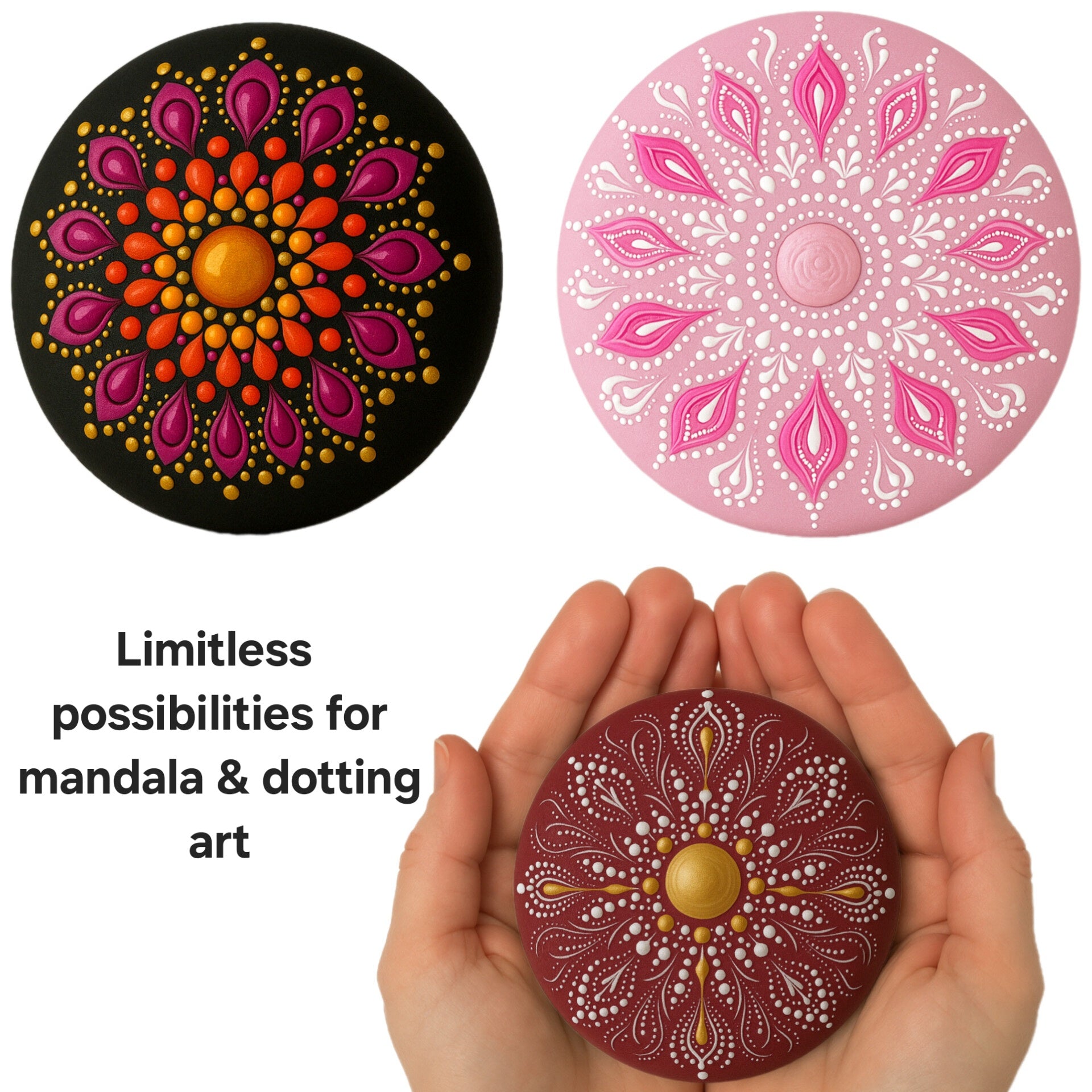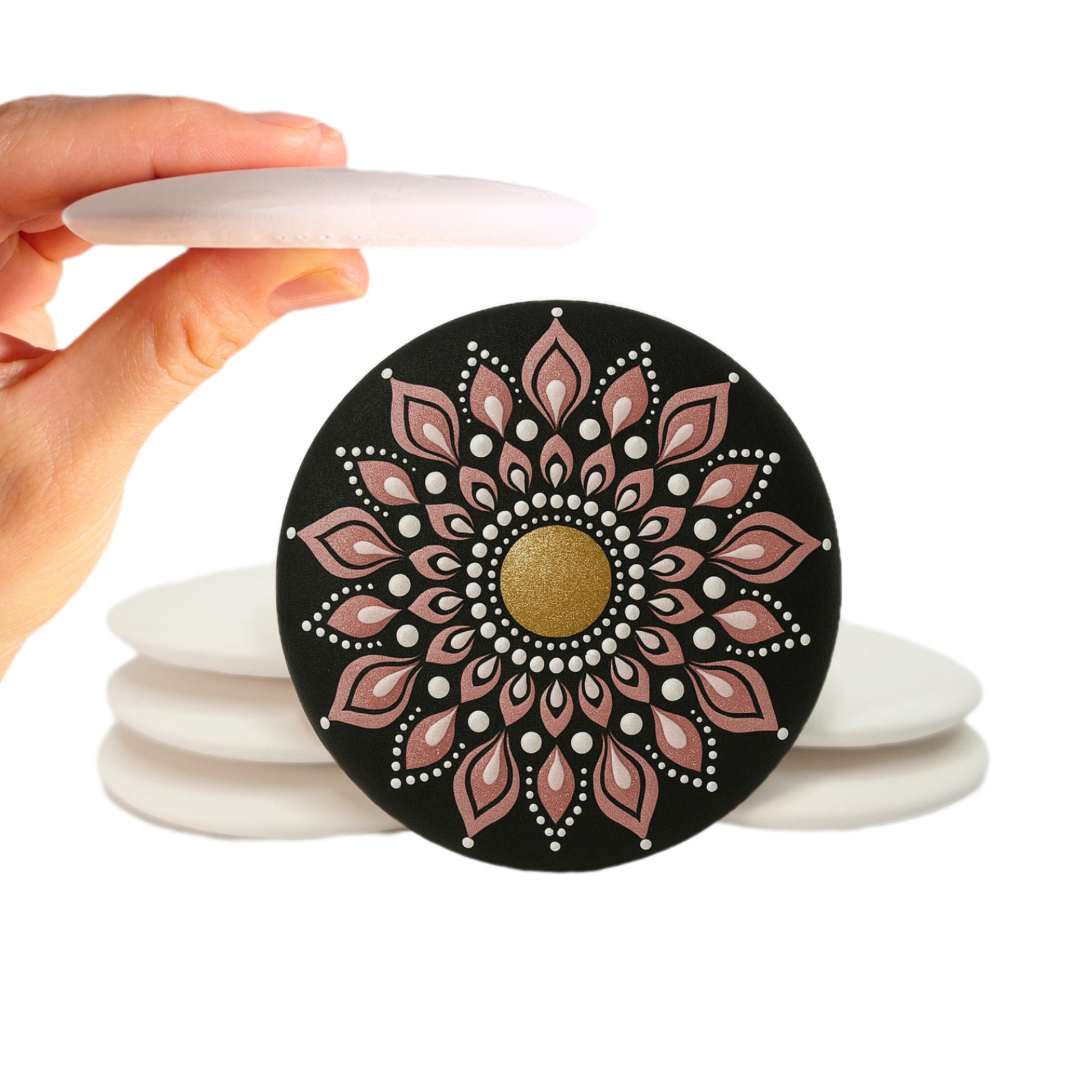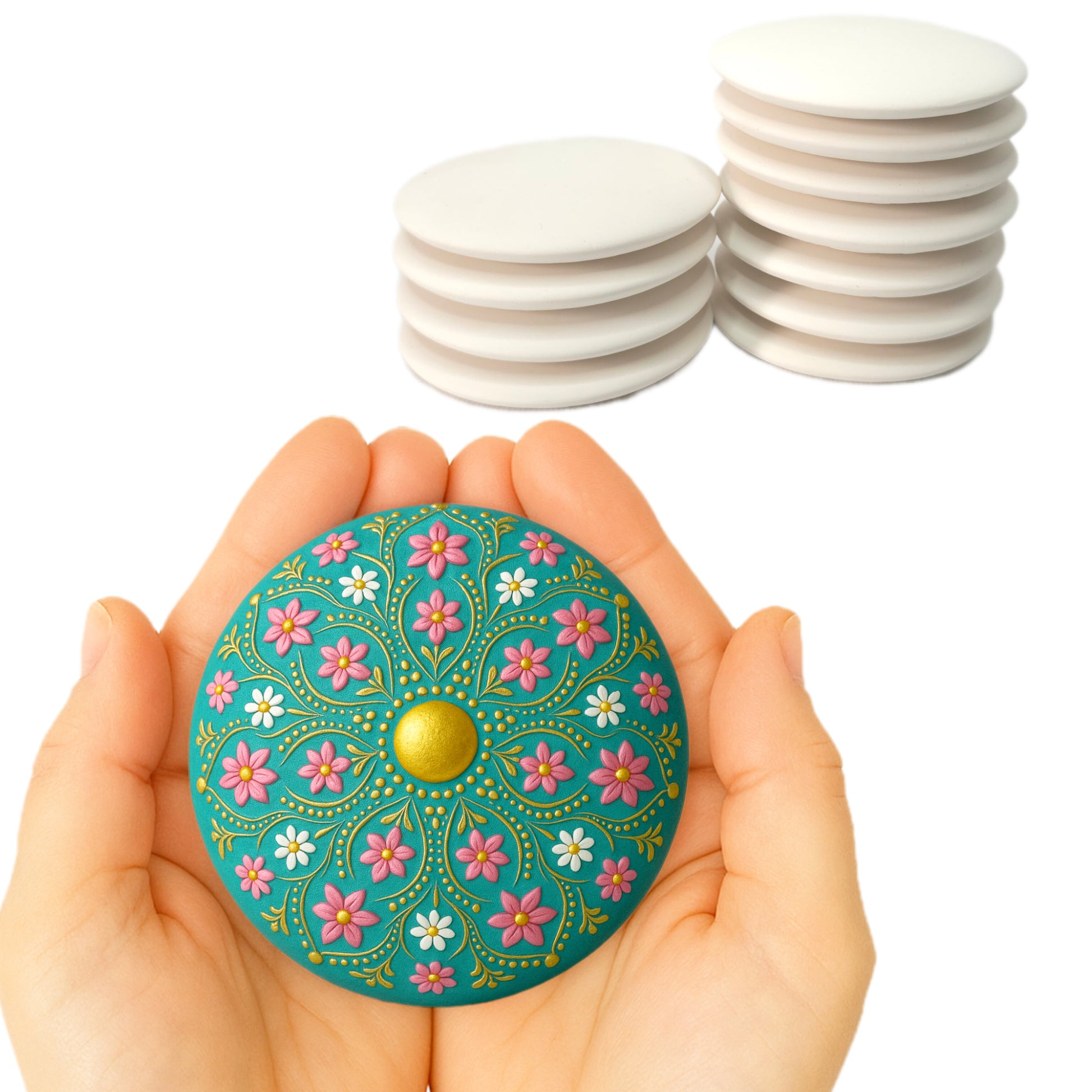 Discover the perfect canvas for your art with this set of handmade plaster stones, ideal for mandala painting, dotting art, and precision craftwork. These 3-inch stones are designed with a flat back, slightly domed front, and a centered reference dot to support symmetrical, detailed designs.
