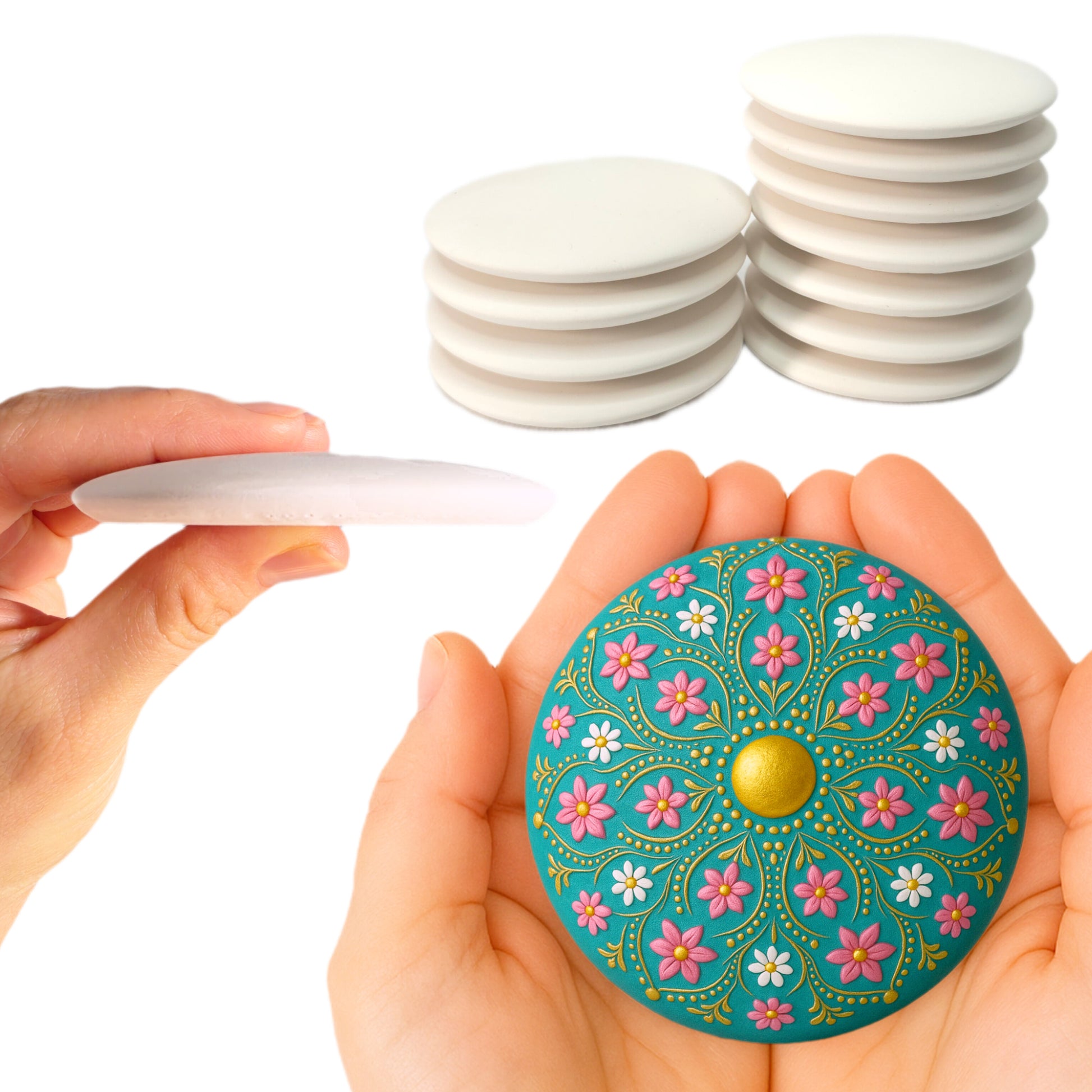 Smooth Flat-Back Painting Rocks with Center Dot for Mandala & Dotting Art, Thin 3” Plaster Stones , Lightweight Craft Surface