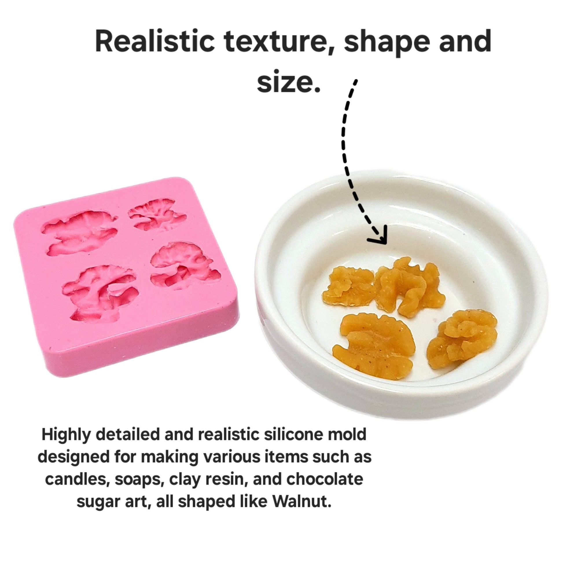 Detailed walnut silicone mold for crafts, Walnut shape mold for DIY resin projects, Versatile silicone mold for walnut replicas, Artisanal walnut mold for chocolate and fondant, Creative walnut silicone mold for polymer clay, High-quality walnut mold for scrapbooking and jewelry.